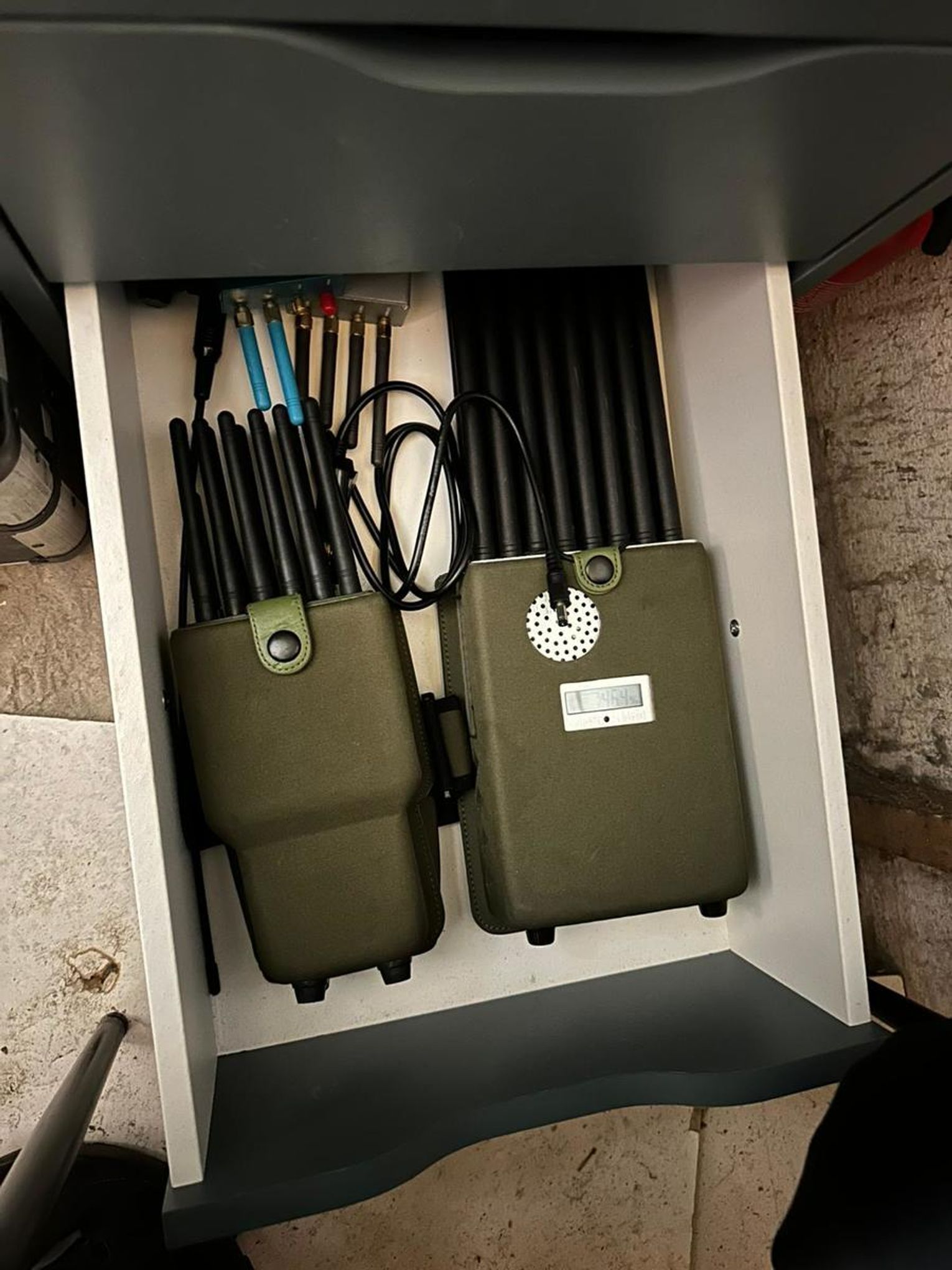 Podczas przeszukania pojazdów w skradzionym oplu policjanci znaleźli m.in. zagłuszarkę sygnału GPS i GSM oraz urządzenie do uruchamiania pojazdów bez kluczyków. Kolejne przeszukania w mieszkaniach i garażach zatrzymanych przyniosły szokujące odkrycia – policjanci zabezpieczyli dekodery kluczy, urządzenia do zapłonu różnych marek samochodów, łamaki, tablice rejestracyjne różnych państw, a także narkotyki.