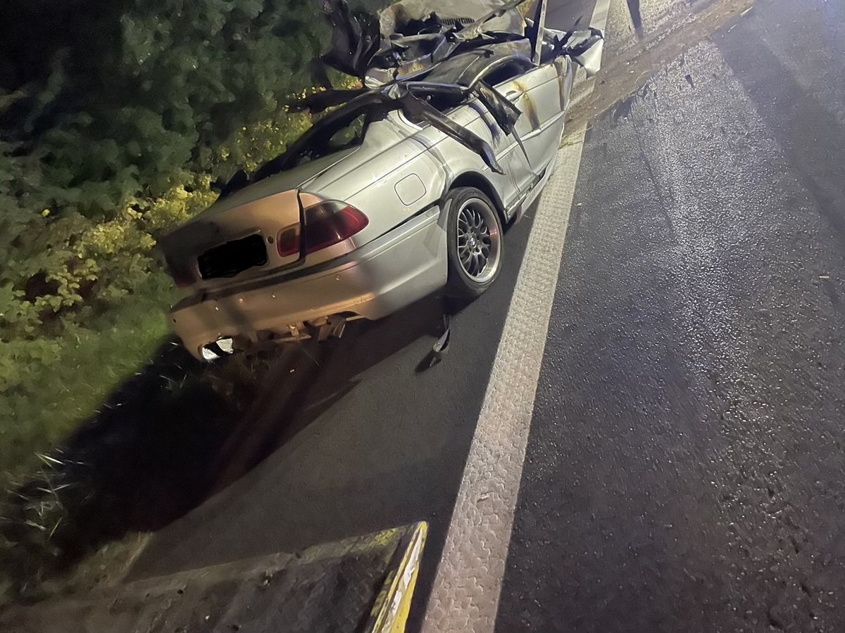 Jak wynika ze wstępnych ustaleń policjantów, kierujący BMW podczas manewru wyprzedzania stracił panowanie nad pojazdem. Auto zjechało na pobocze i z ogromną siłą uderzyło w drzewo. Siła zderzenia była tak duża, że pojazd stanął w płomieniach.