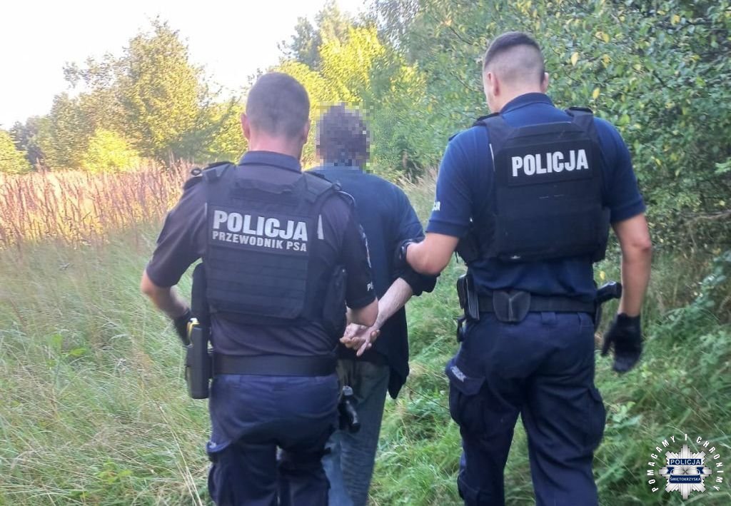 Do zatrzymania doszło po tym, jak strażnicy miejscy z Końskich zauważyli nietypowe miejsce, w którym ktoś mógł się ukrywać. Funkcjonariusze przekazali informację policji, a ta szybko ustaliła, że może tam przebywać poszukiwany od dawna mężczyzna. Mundurowi udali się na miejsce i w gęstej roślinności odkryli pozostałości po podpiwniczeniu. Właśnie tam znajdowała się kryjówka 62-latka.