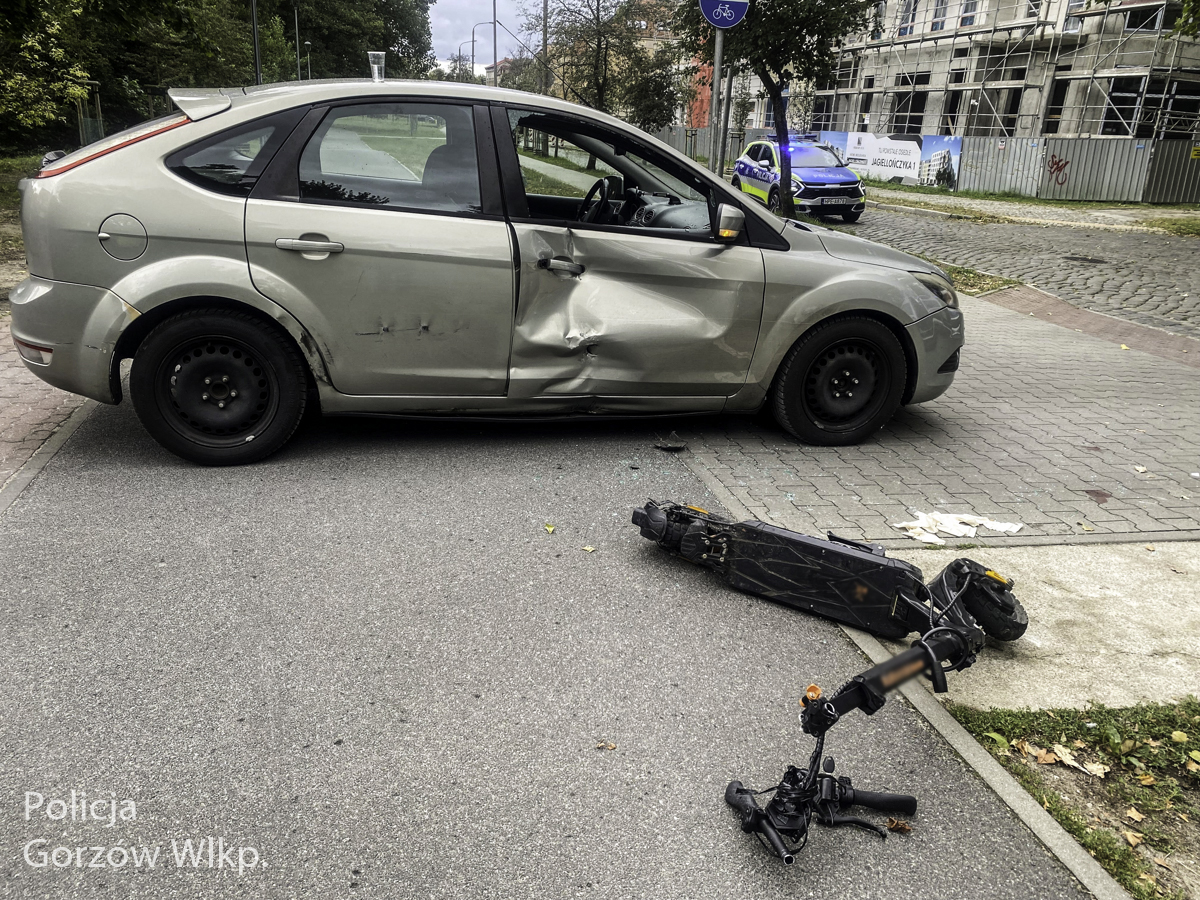 Do wypadku doszło około godziny 15 przy ulicy Dąbrowskiego. Kierujący fordem wyjeżdżał z parkingu i przecinał drogę dla rowerów, gdy w bok pojazdu uderzył 17-latek poruszający się hulajnogą elektryczną. W wyniku zderzenia uszkodzone zostały drzwi auta, a nastolatek wymagał hospitalizacji. Zarówno kierowca, jak i użytkownik hulajnogi byli trzeźwi. Policja prowadzi postępowanie, które ma ustalić winnego zdarzenia.