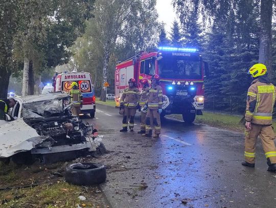 Autem podróżowała jedna osoba - mieszkaniec powiatu braniewskiego. Siła uderzenia była tak duża, że kierowca został zakleszczony wewnątrz pojazdu. Przez kilkanaście minut strażacy, używając narzędzi hydraulicznych, walczyli o uwolnienie poszkodowanego.