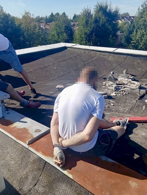 Do nietypowego zatrzymania doszło w środę. Mężczyźni, zaskoczeni widokiem policjantów na dachu, nie mieli możliwości ucieczki. Funkcjonariusze szybko potwierdzili w systemie, że obaj są poszukiwani. Jeden z nich miał do odbycia 15 dni pozbawienia wolności, drugi był objęty nakazem ustalenia miejsca pobytu. Podczas czynności policjanci znaleźli przy jednym z zatrzymanych narkotyki - amfetaminę i MDMA. Kolejne porcje tych substancji zabezpieczono w jego mieszkaniu. Łącznie kryminalni przejęli blisko 20 gramów środków odurzających.