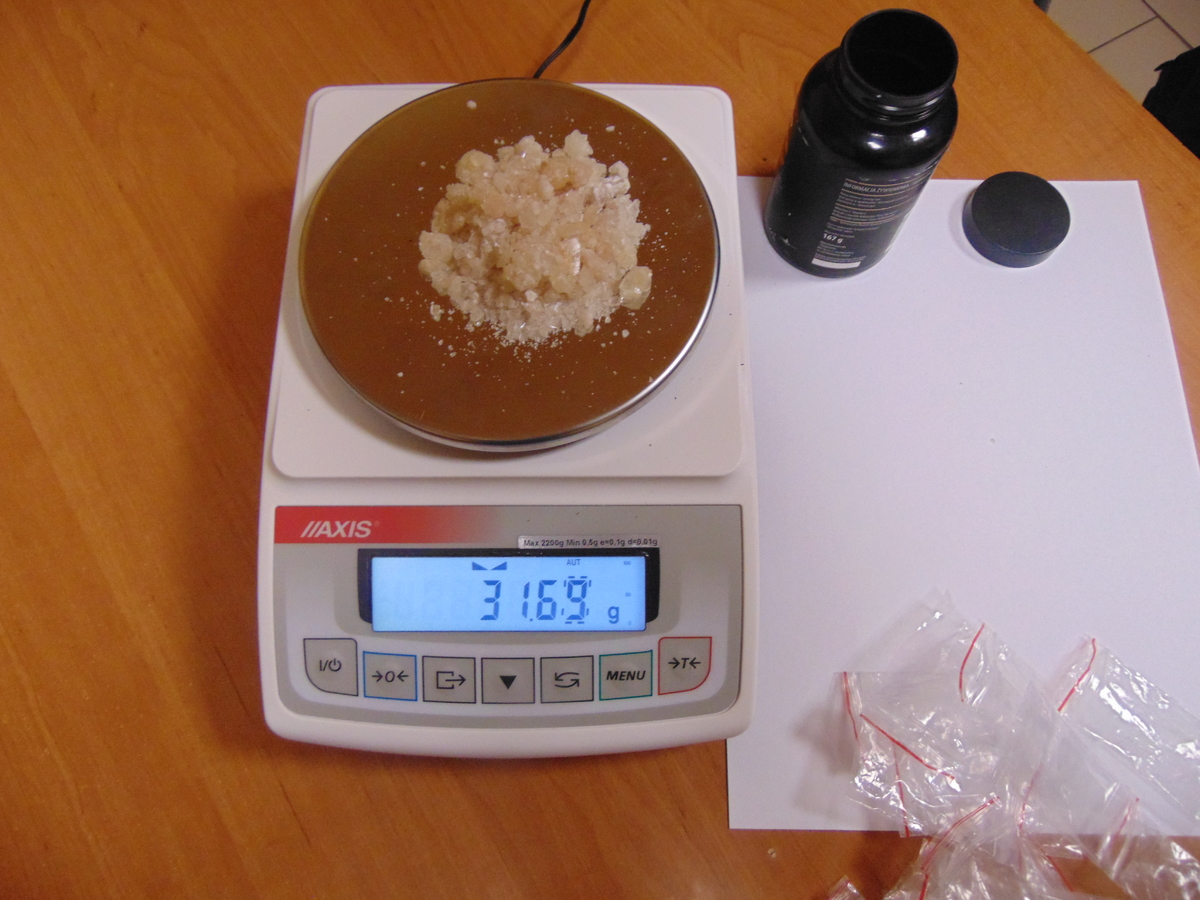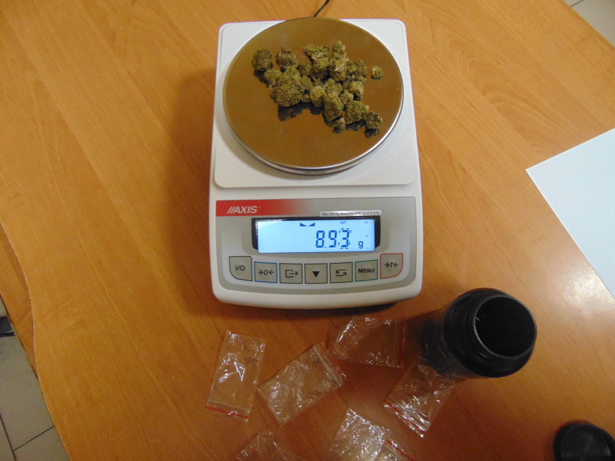 Policjanci znaleźli przy nim dwie czarne buteleczki. W środku było łącznie 26 woreczków strunowych – w tym blisko 9 gramów marihuany i około 32 gramy mefedronu.