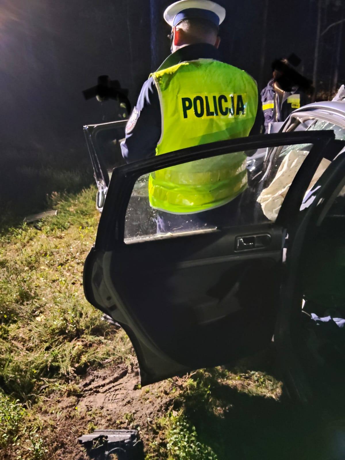 Do zdarzenia doszło tuż przed godziną 22. Ze wstępnych ustaleń policjantów wynika, że 44-letni kierowca volkswagena, jadąc łukiem drogi, nie dostosował prędkości do warunków panujących na jezdni. Stracił panowanie nad pojazdem i z impetem uderzył w drzewo. Niestety, pomimo prowadzonej na miejscu reanimacji, życia 39-letniego pasażera nie udało się uratować. Kierowca z poważnymi obrażeniami został przetransportowany do szpitala śmigłowcem Lotniczego Pogotowia Ratunkowego.
