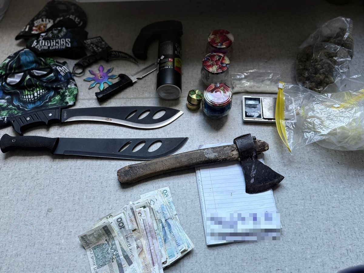 Do zatrzymania doszło kilka dni temu. Podczas przeszukania mieszkania podejrzanego policjanci znaleźli także wagę elektroniczną, woreczki strunowe, a także maczety i nóż typu karambit. Jak ustalili funkcjonariusze, narkotyki zostały kupione w Holandii i następnie przewiezione do Polski. Szacunkowa wartość zabezpieczonych substancji to blisko 7 tysięcy złotych.