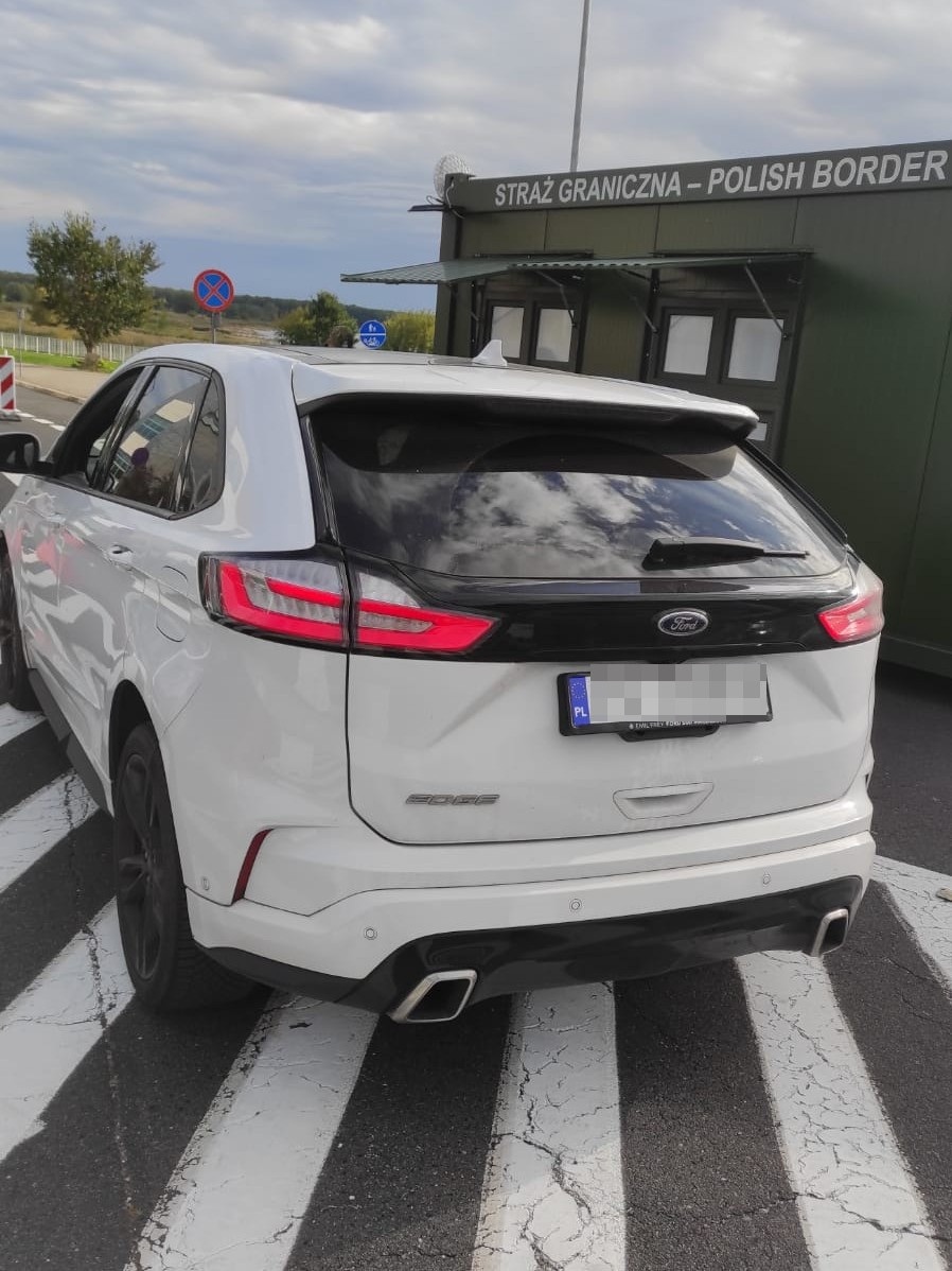 Szybkie sprawdzenie wykazało, że Ford Edge został kilka dni wcześniej skradziony w Niemczech. Pojazd miał podrobione polskie tablice rejestracyjne, a w środku mundurowi znaleźli oryginalne niemieckie tablice oraz dowód rejestracyjny.