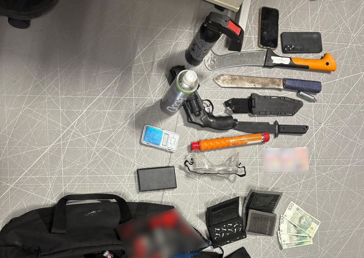 W samochodzie funkcjonariusze znaleźli emblematy pseudokibicowskie, kominiarki, ostre przedmioty oraz pistolet gazowy przekazany do analizy balistycznej. Jak ustalono, obaj mężczyźni są powiązani ze środowiskiem pseudokibiców jednego z krakowskich klubów sportowych.