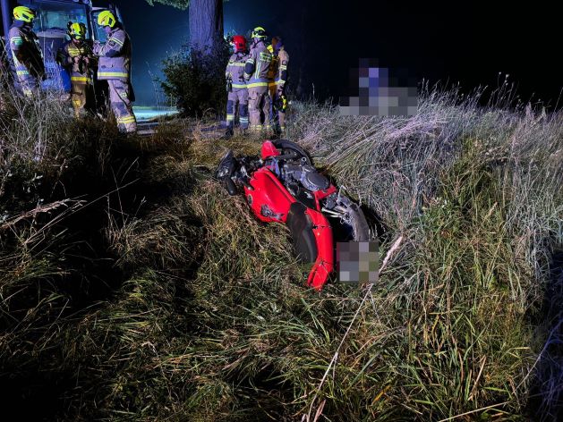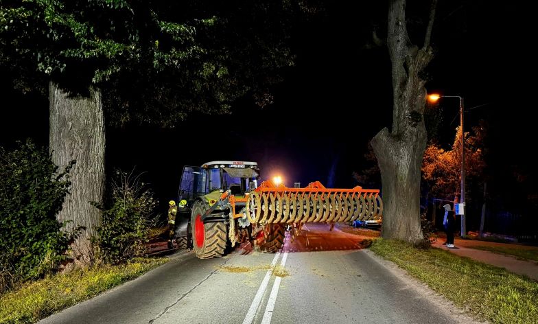 Do zdarzenia doszło po godzinie 20. Motocyklista, jadący suzuki, podczas nieprawidłowego manewru wyprzedzania uderzył w ciągnik rolniczy. Mężczyzna został przewieziony do szpitala.
