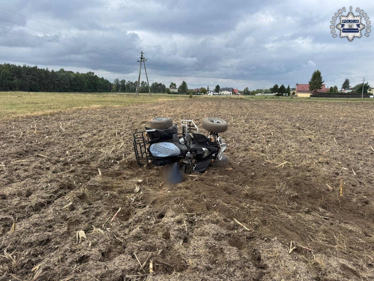 Jak informuje opolska policja, do zdarzenia doszło w środę w miejscowości Barut. Funkcjonariusze zauważyli pojazd poruszający się niezgodnie z przepisami. Pomimo wydania wyraźnych sygnałów świetlnych i dźwiękowych, kierowca zignorował polecenia, przyspieszył i próbował uciekać. Wjechał na drogę polną, a następnie na pole uprawne, gdzie stracił panowanie nad czterokołowcem i się wywrócił.