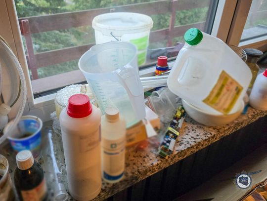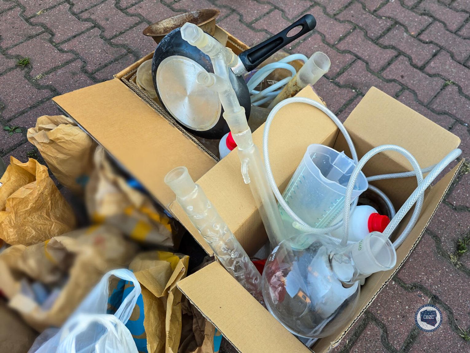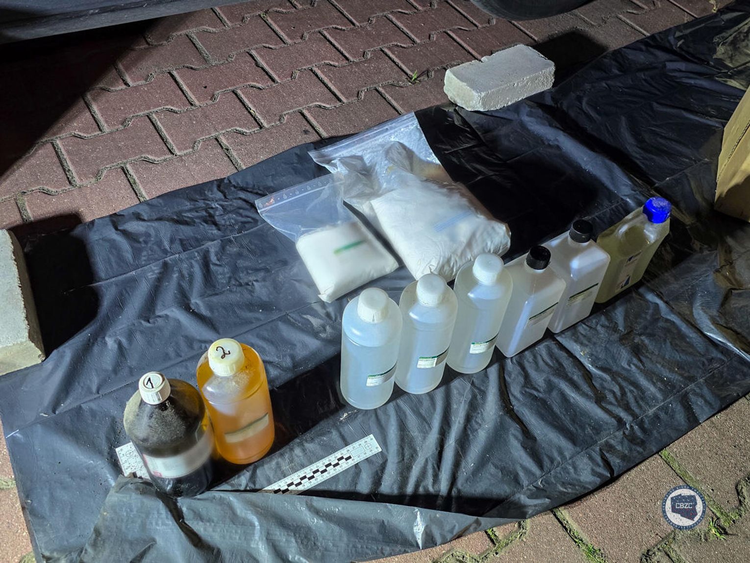 Podczas przeszukania policjanci zabezpieczyli kompletną linię produkcyjną służącą do wytwarzania fenmetrazyny, substancji o działaniu zbliżonym do amfetaminy i morfiny oraz mefedronu (4-MMC). Zabezpieczono także około 50 kilogramów różnych odczynników chemicznych potrzebnych do produkcji narkotyków, a także sprzęt elektroniczny: dyski twarde, telefony i nośniki pamięci, które zostaną dokładnie przeanalizowane przez ekspertów CBZC.