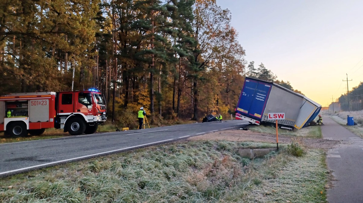 Jak ustalili policjanci z Komendy Powiatowej Policji w Lublińcu, 49-letni mieszkaniec Opoczna, kierujący samochodem osobowym marki Ford, z nieustalonych dotąd przyczyn zjechał na przeciwległy pas ruchu, gdzie zderzył się czołowo z samochodem ciężarowym.