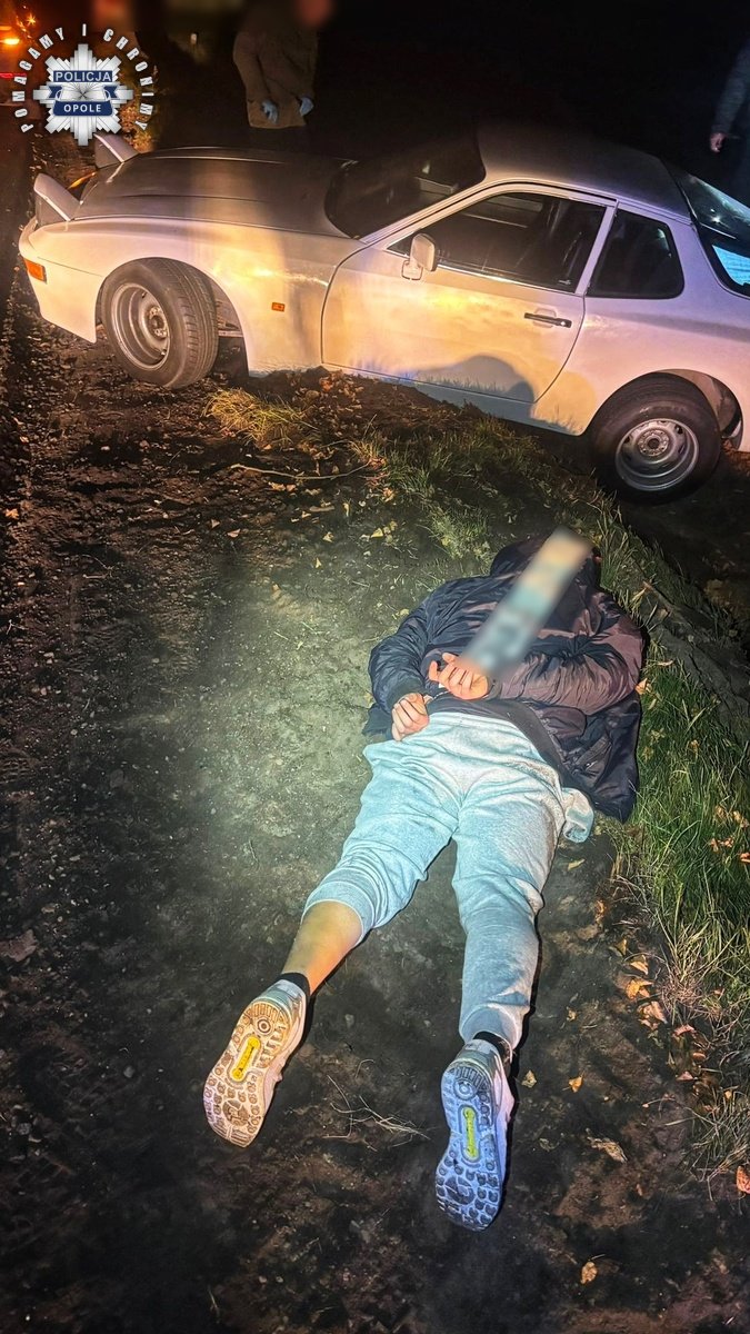 Policjanci natychmiast rozpoczęli poszukiwania i ustalili trasę, którą poruszał się skradziony pojazd. Podczas pościgu mężczyzna nie reagował na sygnały do zatrzymania, a w pewnym momencie utracił panowanie nad samochodem i wjechał do rowu. Sprawca próbował jeszcze podpalić pojazd, jednak funkcjonariusze szybko go obezwładnili i zapobiegli pożarowi.