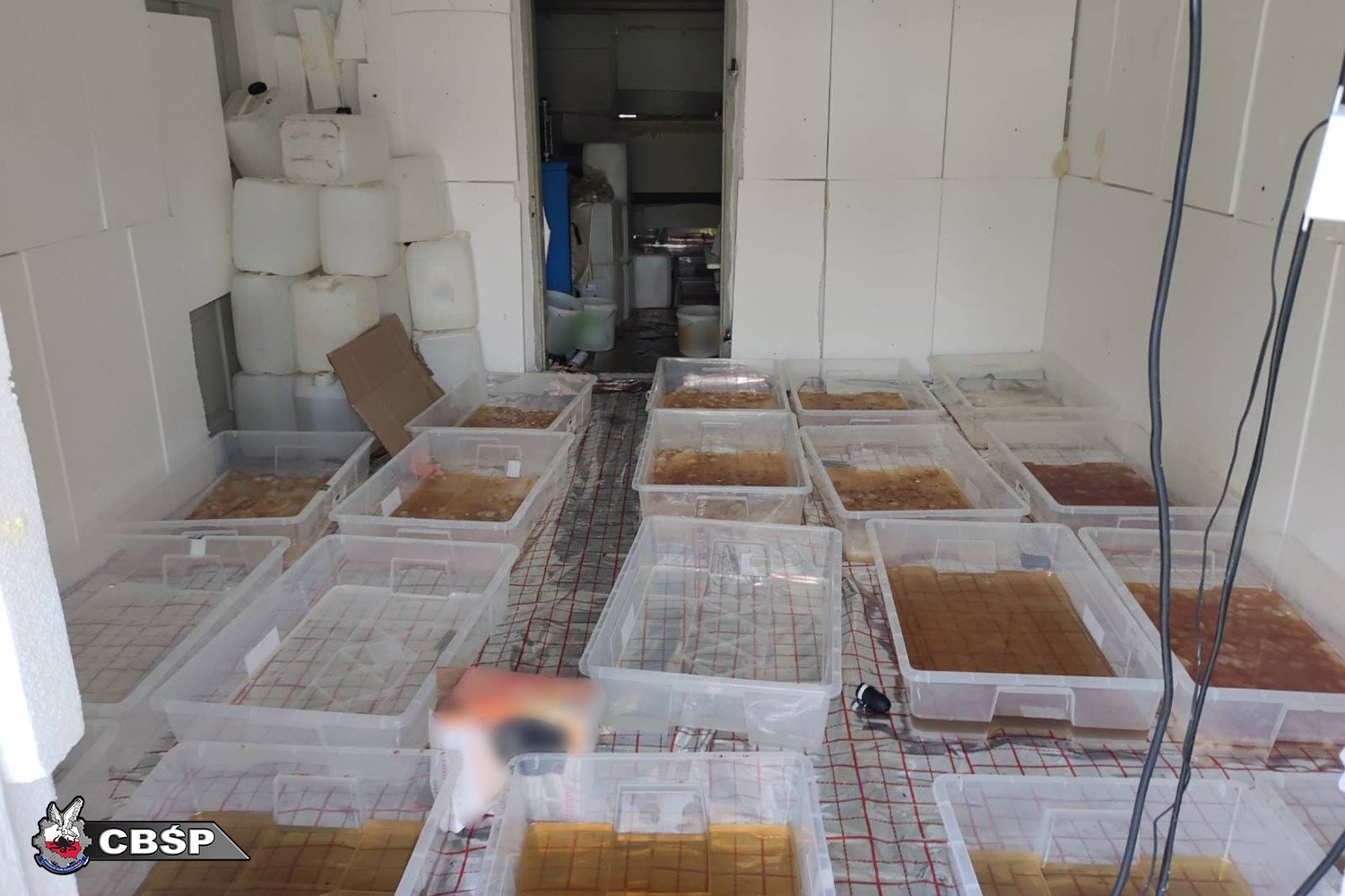 W wyniku przeszukań funkcjonariusze zabezpieczyli ponad 360 litrów płynnego klofedronu, 35 kilogramów skrystalizowanej formy tej substancji, 9000 litrów klefedronu oraz ponad 114 litrów α-PVP.