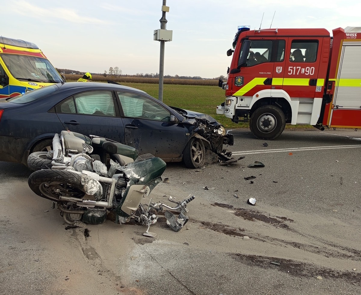 Do wypadku doszło w momencie, gdy kierujący Nissanem 20-letni mieszkaniec powiatu zamojskiego wykonywał manewr skrętu w lewo. 20-latek nie udzielił pierwszeństwa przejazdu prawidłowo jadącemu motocykliście. 44-latek z gminy Wohyń, kierujący motocyklem marki Honda, z obrażeniami ciała został przetransportowany do szpitala.
