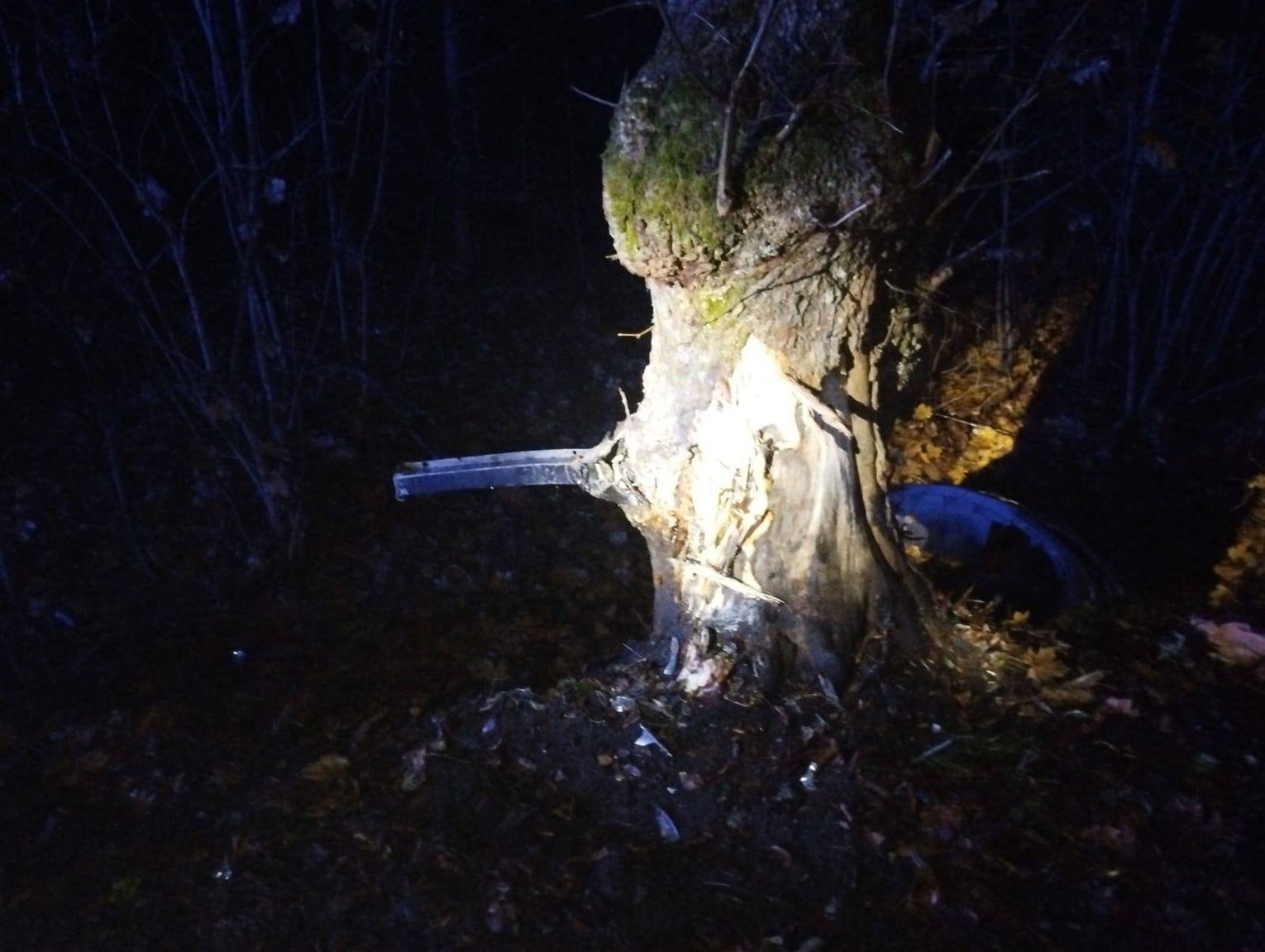 W chwili wypadku w samochodzie znajdował się tylko kierowca. Siła uderzenia była tak duża, że z pojazdu wyrwany został silnik, a mężczyzna w momencie przyjazdu służb znajdował się poza samochodem. Strażacy z Państwowej Straży Pożarnej w Braniewie oraz ochotnicy z OSP Lelkowo i OSP Pieniężno natychmiast przystąpili do udzielania pomocy poszkodowanemu. Na miejscu pracował również zespół ratownictwa medycznego oraz policjanci, którzy ustalali okoliczności zdarzenia.