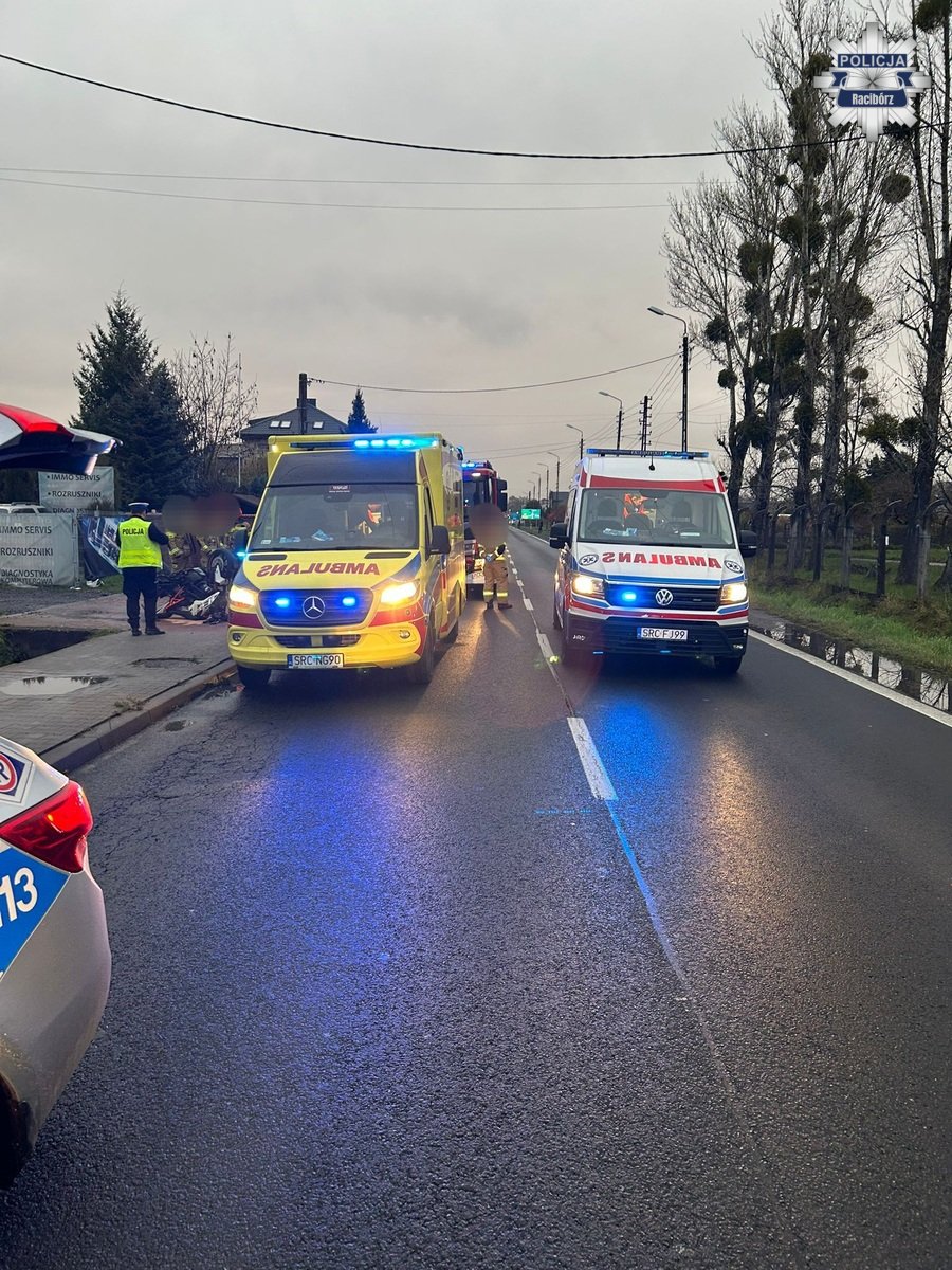 Ze wstępnych ustaleń wynika, że 16-letni kierujący motocyklem podczas manewru wyprzedzania uderzył w bok samochodu marki Ford, którym kierował 18-letni mężczyzna wykonujący zmianę kierunku jazdy. W wyniku zdarzenia 16-latek oraz jego 15-letni pasażer zostali przewiezieni do szpitala.