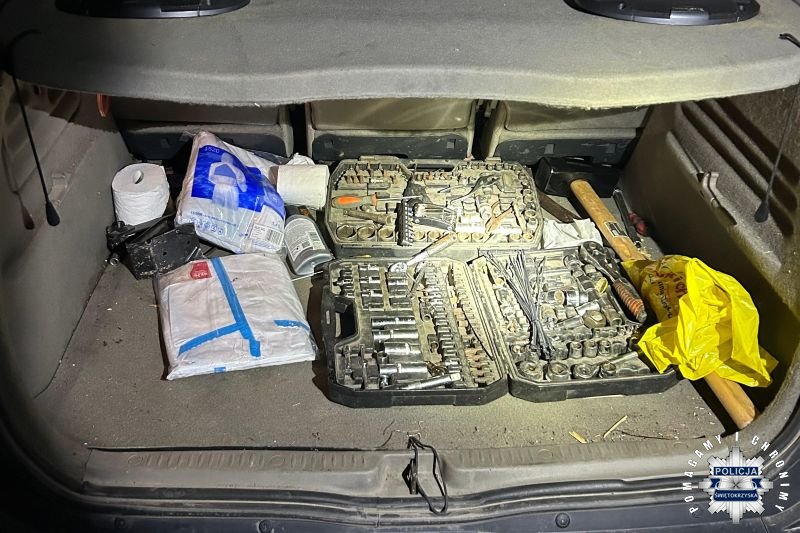 Do zatrzymań doszło w piątek nad ranem, kiedy mundurowi z Wydziału Kryminalnego opatowskiej jednostki, wspierani przez funkcjonariuszy z Komendy Wojewódzkiej Policji w Kielcach, zatrzymali podejrzanych poruszających się samochodem marki Renault. W pojeździe znaleziono pieniądze w kwocie przekraczającej 380 tys. zł pochodzące z przestępstw dokonanych w nocy na terenie województwa podkarpackiego. Policjanci zabezpieczyli także narzędzia, których mężczyźni używali podczas włamań.