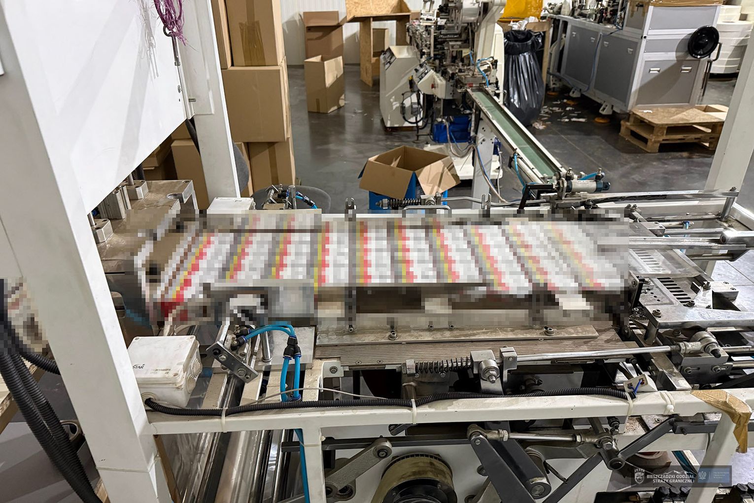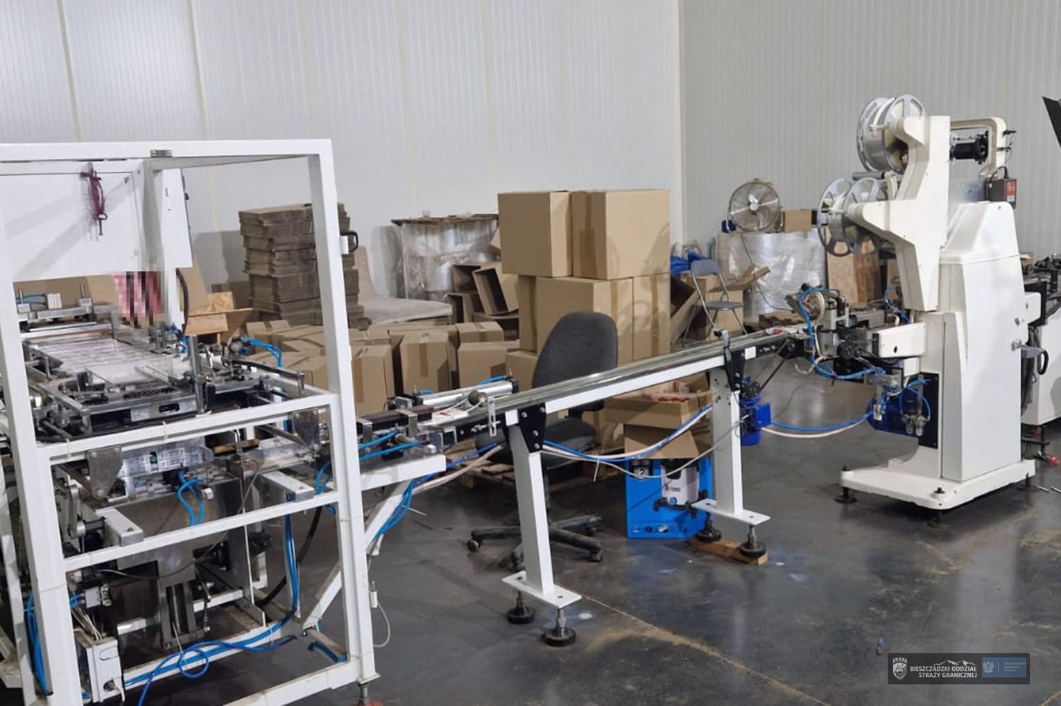 Działania przeprowadzono na początku listopada w trzech lokalizacjach, na terenie powiatów grójeckiego, rawskiego i przasnyskiego. Mundurowi z Wydziału Operacyjno-Śledczego Bieszczadzkiego Oddziału SG oraz funkcjonariusze CBŚP z Zarządu w Kielcach weszli do hal, które oficjalnie funkcjonowały jako sortownie owoców. W rzeczywistości kryła się tam profesjonalna infrastruktura do nielegalnej produkcji papierosów.