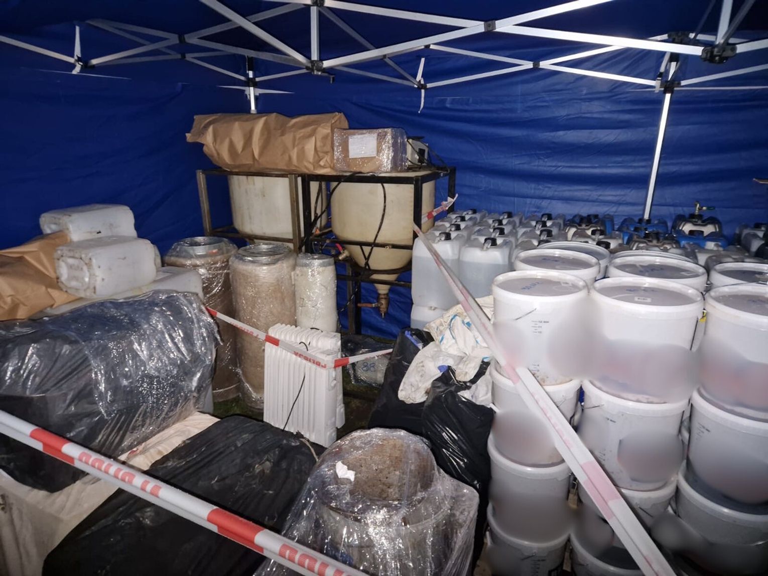 Do realizacji doszło 13 listopada na terenie gospodarstwa w Czarnkowie. Z ustaleń policji wynika, że to właśnie tam podejrzani prowadzili nielegalną produkcję narkotyków. Funkcjonariusze, wykorzystując wsparcie kontrterrorystów, weszli na posesję i przeszukali stodoły oraz pomieszczenia gospodarcze. W środku odkryto rozproszoną linię produkcyjną oraz liczne pojemniki wypełnione klefedronem (3CNC). Łączna ilość zabezpieczonego gotowego narkotyku wyniosła około 238 kg.