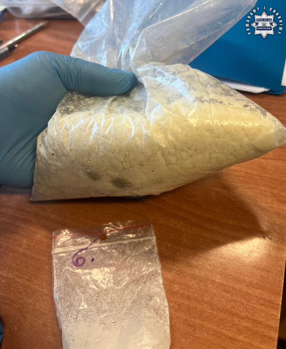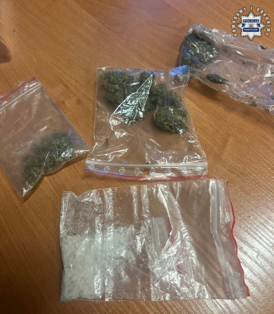 Szybko ustalono, że kierowca posiada aktywny sądowy zakaz prowadzenia pojazdów wydany przez Sąd Rejonowy w Kluczborku. Podczas oględzin wnętrza auta policjanci zauważyli woreczek strunowy z suszem przypominającym marihuanę. W związku z tym zdecydowali o przeszukaniu pojazdu i 32-latka, znajdując kolejne porcje środków odurzających.