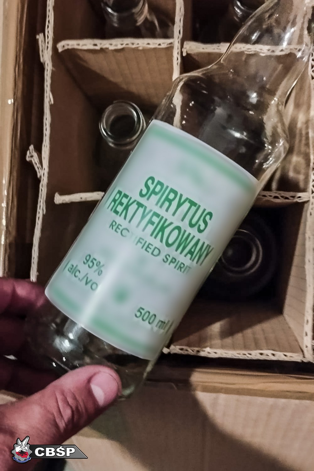 W jednym z ujawnionych magazynów funkcjonariusze znaleźli ponad 53 tysiące litrów alkoholu etylowego niewiadomego pochodzenia. W innych miejscach odkryto w pełni wyposażone nielegalne rozlewnie i destylarnię wraz z butelkami, pompami, aparaturą do produkcji oraz podrobionymi znakami towarowymi. W toku dalszych działań zatrzymano kolejne osoby zajmujące się dystrybucją alkoholu oraz papierosów bez polskich znaków akcyzy.