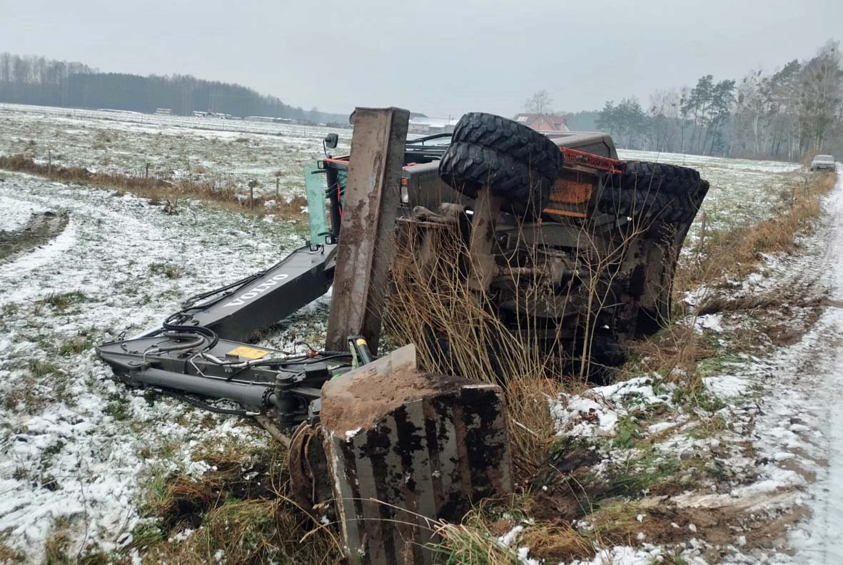 Do zdarzenia doszło w poniedziałek, 25 listopada. Dyżurny otrzymał zgłoszenie, że kierujący koparką zjechał na pobocze i wywrócił pojazd. Na miejscu funkcjonariusze zastali przewróconą maszynę, natomiast sam operator oddalił się przed ich przyjazdem.