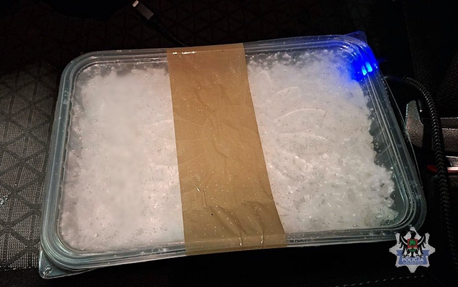 W trakcie przeszukania pojazdu policjanci znaleźli pod jego fotelem plastikowy pojemnik wypełniony kryształkami. Badanie wykonane przez technika kryminalistyki potwierdziło, że była to metamfetamina. Łącznie zabezpieczono pół kilograma narkotyku. Kolejne, mniejsze ilości tej samej substancji mundurowi odkryli w mieszkaniu podejrzanego.