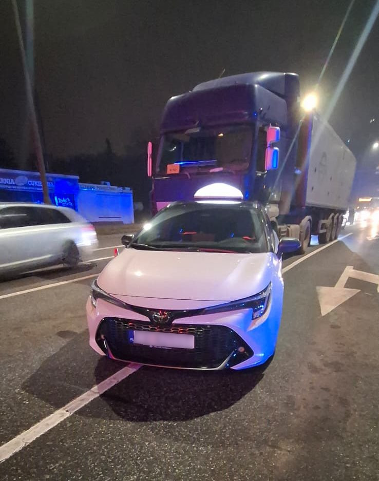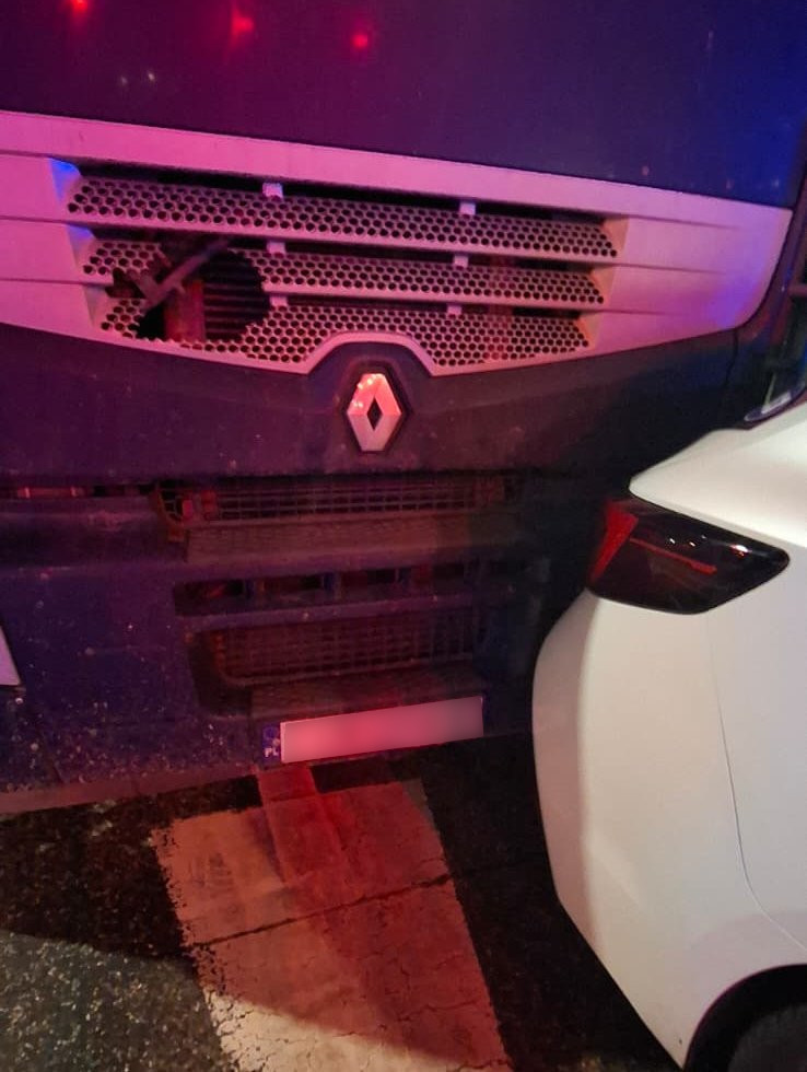 Pozostawiony bez kierowcy tir stoczył się i uderzył w toyotę corollę stojącą przed rondem. Jak ustalono, chwilę wcześniej ciężarówka brała udział w kolizji w Nowej Wsi Wielkiej, gdzie uderzyła w renault captur. Na szczęście nikt nie został poszkodowany.