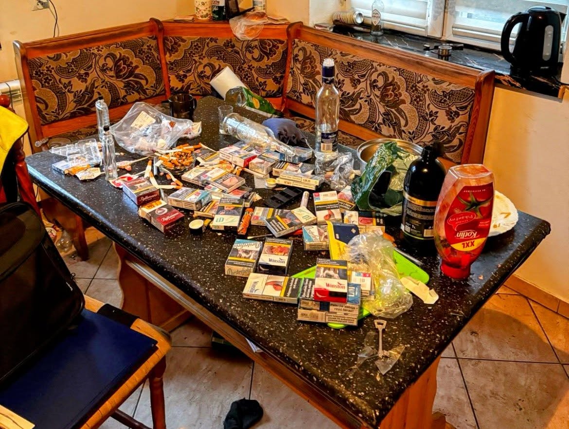 W pomieszczeniach znajdowały się przedmioty pochodzące z kradzieży - papierosy oraz butelki alkoholu, w większości już puste. Podczas przeszukania policjanci zabezpieczyli również metalowy łom, rękawiczki oraz rajstopy z wyciętymi otworami, które mogły służyć do popełnienia przestępstwa.