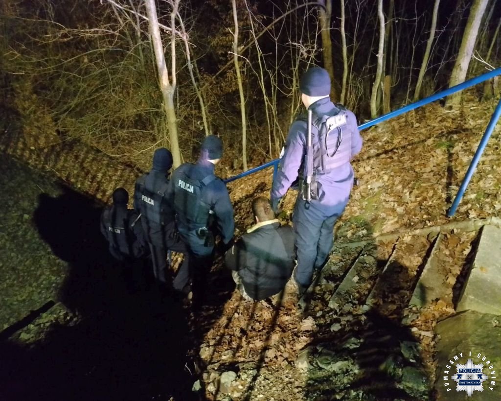 Policjanci, dysponując jedynie szczątkowymi informacjami, szybko wytypowali rejon poszukiwań. Kilka minut po godzinie 19.00 funkcjonariusze odnaleźli w zalesionym terenie mocno zziębniętego 35-latka. Mundurowi pomogli mu bezpiecznie wydostać się z lasu, a po dotarciu do drogi krajowej nr 42 przekazali go zespołowi ratownictwa medycznego.