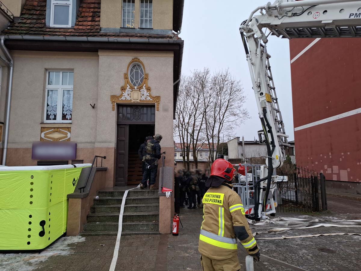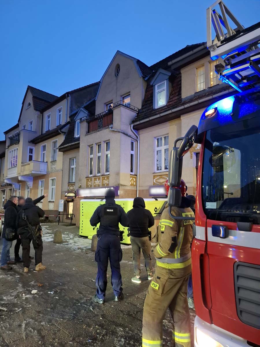 Jak informuje policja z Lębork, zgłoszenie wpłynęło tuż przed godziną 4 rano. Na miejsce natychmiast skierowano patrol oraz policyjnych negocjatorów. Ze względu na potencjalne zagrożenie pogotowie gazowe odcięło dopływ gazu do kamienicy, a strażacy rozłożyli pod oknem mieszkania poduszkę powietrzną.