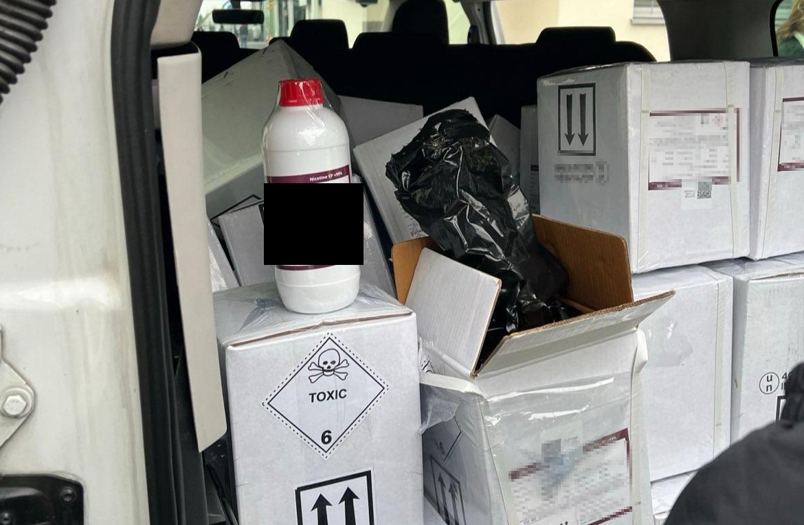 W bagażniku funkcjonariusze znaleźli płyn opatrzony etykietami sugerującymi wysoką zawartość nikotyny. Jak ustalono, rynkowa wartość przechwyconego ładunku przekracza 1,1 mln zł. Pobranie próbek i badania w Laboratorium Celno-Skarbowym w Przemyślu potwierdziły, że stężenie nikotyny w płynie było wyjątkowo wysokie. Substancja tego typu wykorzystywana jest do produkcji płynów do e-papierosów, ale w takiej koncentracji jest silnie toksyczna i stanowi zagrożenie dla zdrowia.