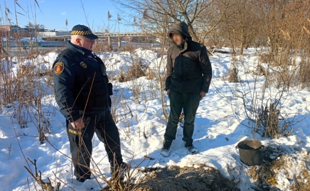 Na miejscu zastali 76-letniego mężczyznę zbierającego chrust. Był wyraźnie przemarznięty, ale zdrowy i w pełni sił. Senior zdecydowanie odmówił propozycji przewiezienia do ogrzewalni lub noclegowni. - Panowie, ja tu mieszkam od 15 lat. Zobaczcie, jak się urządziłem - powiedział strażnikom i zaprowadził ich do swojego „domu”.