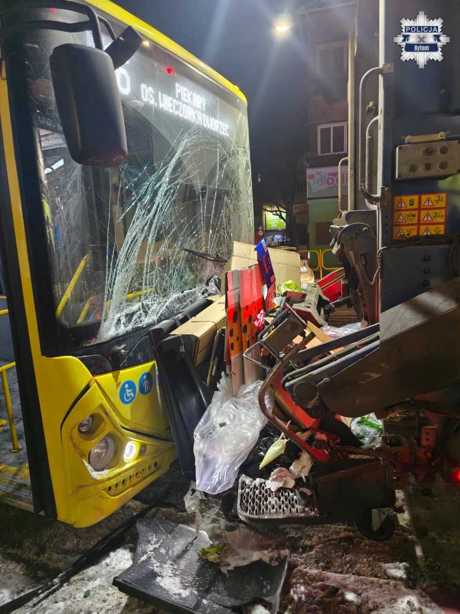 Ze wstępnych ustaleń policjantów wynika, że 52-letni kierowca autobusu marki Akia nie zachował bezpiecznej odległości od poprzedzającego go Peugeota, który zatrzymał się przed oznakowanym przejściem dla pieszych. Autobus najechał na tył Peugeota, a próbując ominąć pojazd, uderzył w tył śmieciarki.