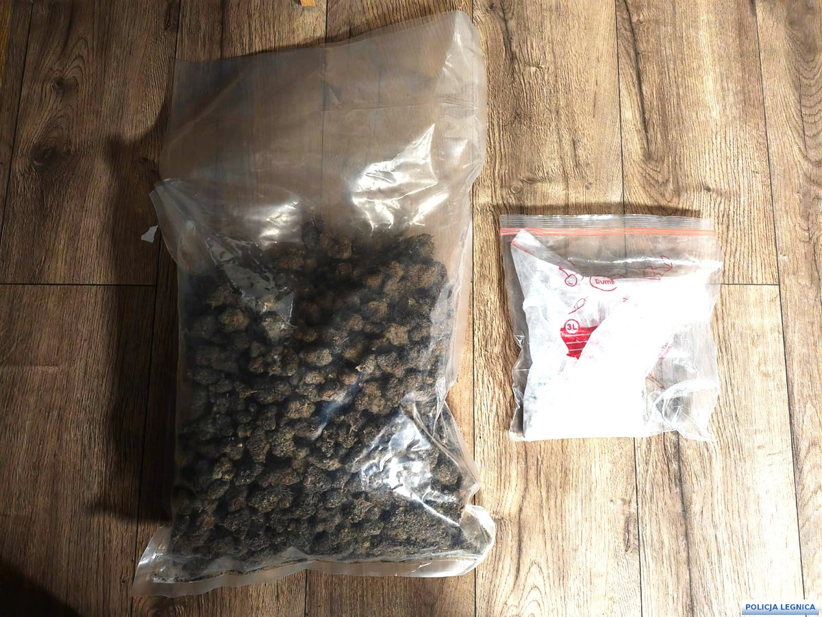 Podczas przeszukania torby funkcjonariusze znaleźli susz roślinny oraz biały proszek. Badania przeprowadzone przez technika kryminalistyki potwierdziły, że zabezpieczony susz to marihuana o wadze blisko kilograma, a biały proszek to kokaina ważąca ponad 100 gramów. Nieletni został przewieziony do Komendy Miejskiej Policji w Legnicy, gdzie czynności prowadzone były w obecności jego matki.