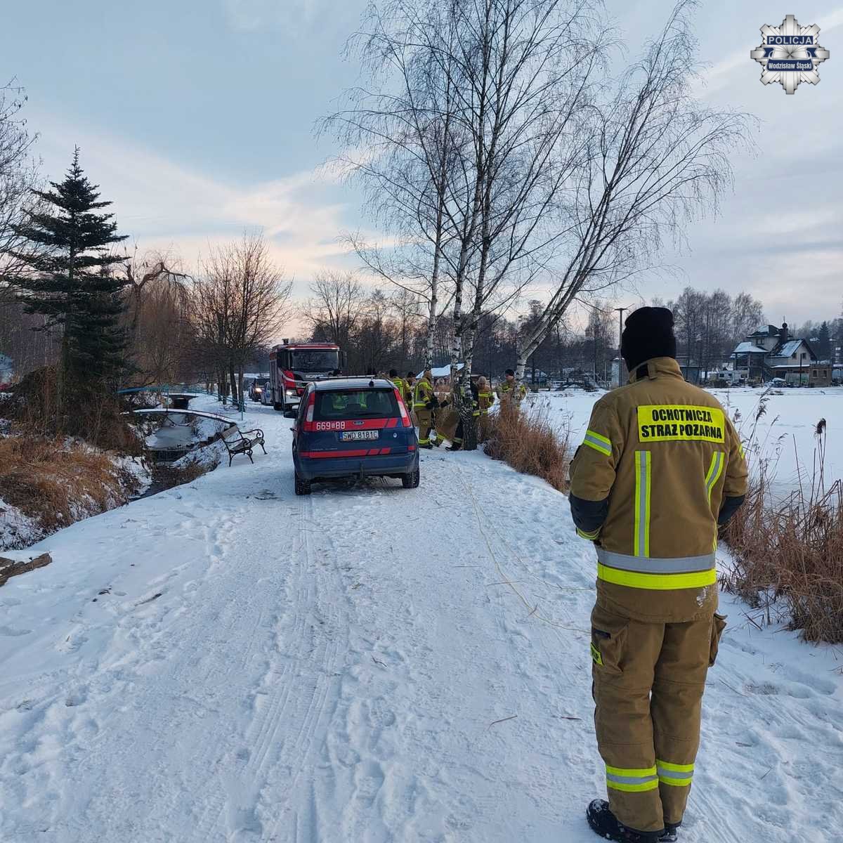 Mimo braku wyraźnych śladów na powierzchni lodu, na miejsce skierowano służby ratunkowe. Strażacy potwierdzili, że w zbiorniku znajduje się zatopiony pojazd widoczny na nagraniu. Policjanci ustalili właściciela samochodu, osobę kierującą oraz autora filmu.