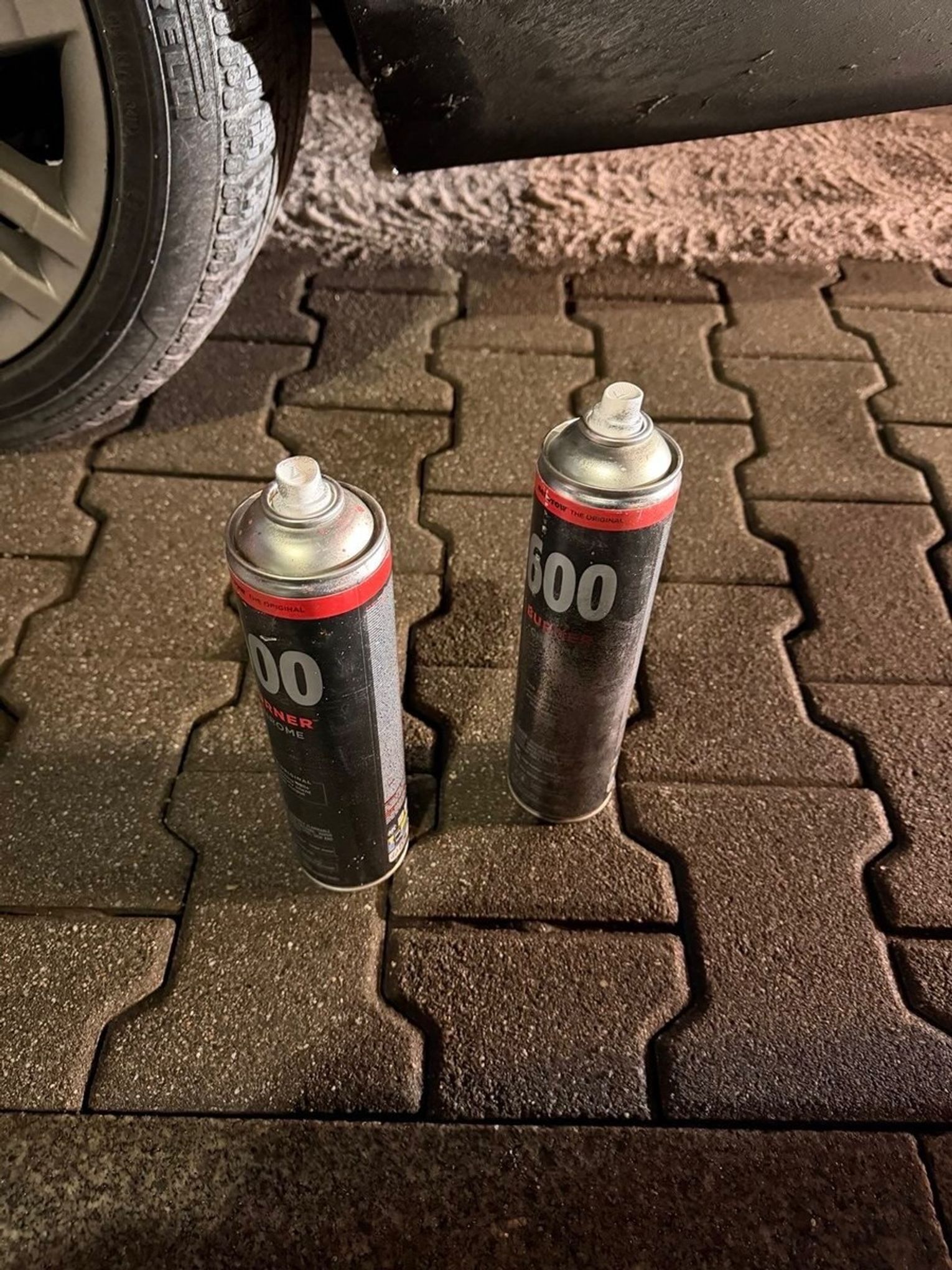 Podczas przeszukania pojazdów funkcjonariusze zabezpieczyli m.in. pojemniki ze sprayem, kominiarki, a także elementy odzieży i akcesoria związane z barwami pseudokibiców. Choć do tej pory nie wpłynęły oficjalne zawiadomienia od osób pokrzywdzonych, policja zabezpieczyła materiał dowodowy i prowadzi czynności wyjaśniające.