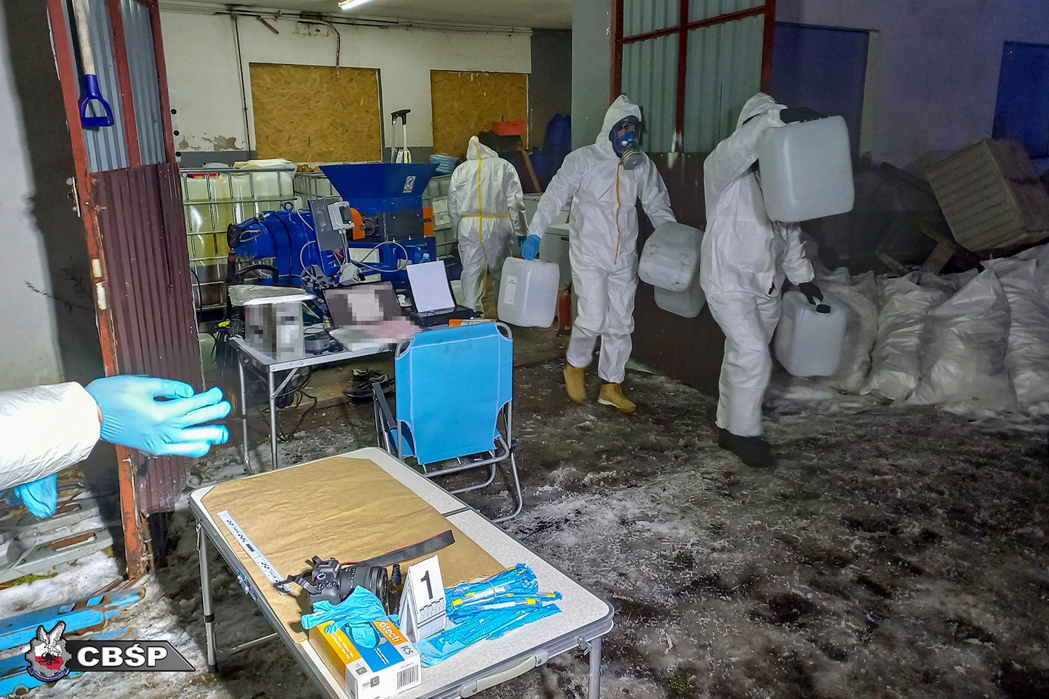 Akcja została przeprowadzona 16 stycznia 2026 roku przez policjantów CBŚP, przy wsparciu funkcjonariuszy Komendy Powiatowej Policji w Oleśnicy. Działania realizowano w ramach śledztwa prowadzonego przez Małopolski Wydział Zamiejscowy Departamentu do Spraw Przestępczości Zorganizowanej i Korupcji Prokuratury Krajowej w Krakowie. W jednej z miejscowości powiatu oleśnickiego funkcjonariusze ujawnili w pełni wyposażoną, profesjonalną linię produkcyjną służącą do wytwarzania klofedronu.