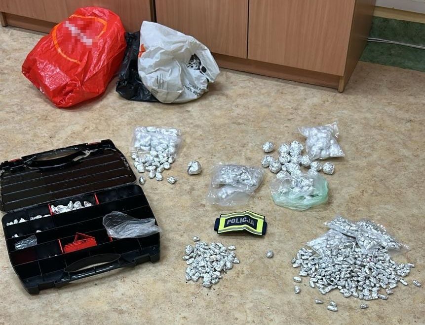 Podczas przeszukania plecaka oraz walizki należących do zatrzymanego policjanci znaleźli worki foliowe z narkotykami. Wstępna opinia biegłego wykazała, że zabezpieczono ponad 2 tysiące porcji klefedronu, amfetaminy oraz marihuany. Mężczyzna został zatrzymany i przewieziony do policyjnego aresztu.