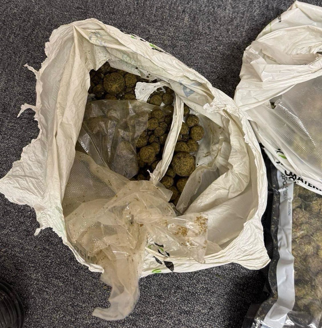 W kuchni funkcjonariusze znaleźli foliowe opakowania z suszem roślinnym oraz brunatne kostki. W działaniach brał udział również funkcjonariusz Pomorskiego Urzędu Celno-Skarbowego w Gdyni wraz z psem służbowym wyszkolonym do wykrywania narkotyków. Zwierzę precyzyjnie wskazało miejsca, w których ukryte były środki odurzające.