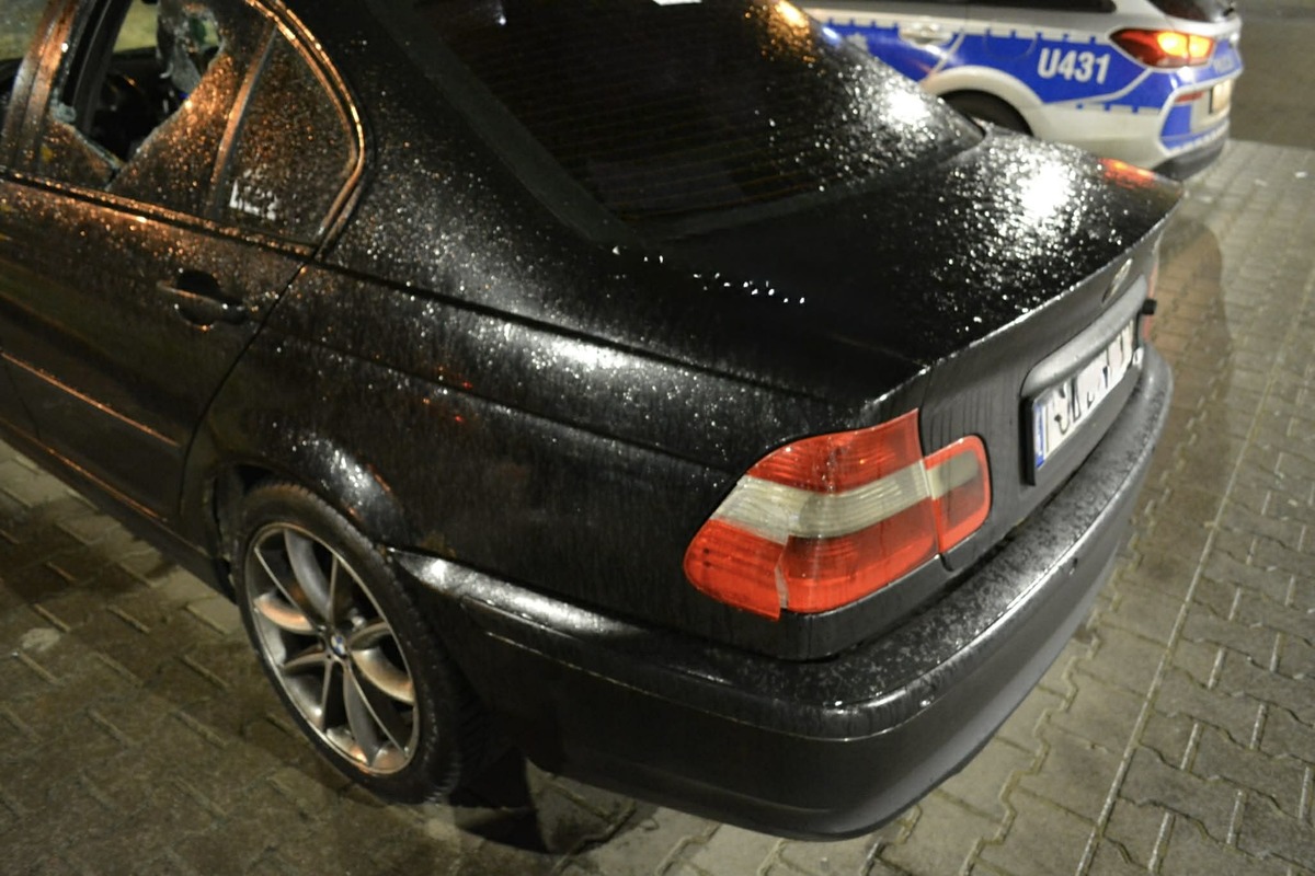 Z ustaleń funkcjonariuszy wynika, że dwaj mężczyźni podbiegli do zaparkowanego samochodu marki BMW, w którym znajdowało się pięć osób, i zaczęli uderzać w pojazd pięściami. Kobieta siedząca za kierownicą próbowała natychmiast odjechać, jednak w pewnym momencie silnik zgasł. Dopiero po chwili udało jej się uruchomić auto i oddalić z miejsca zdarzenia.