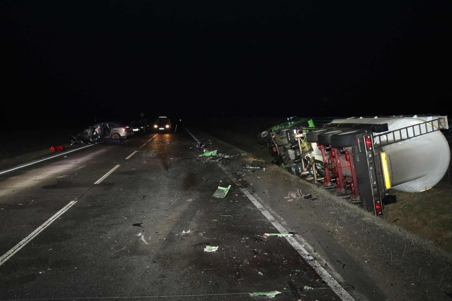 Kierowca nadjeżdżającego z naprzeciwka samochodu ciężarowego, widząc zagrożenie, próbował ostrzec drugiego uczestnika ruchu, używając świateł drogowych. Mimo to kierujący fordem nie zareagował i nie zmienił toru jazdy. W konsekwencji doszło do czołowego zderzenia obu pojazdów. Siła uderzenia była tak duża, że 41-latek kierujący samochodem osobowym zginął na miejscu.