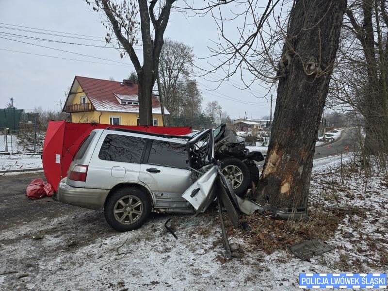 Ze wstępnych ustaleń policjantów wynika, że 46-letni mieszkaniec powiatu lwóweckiego podróżował samochodem marki Subaru w kierunku Olesznej Podgórskiej. Na prostym odcinku drogi mężczyzna nagle zjechał z jezdni. Pojazd najpierw uderzył w lampę oświetleniową, a następnie z ogromną siłą wbił się czołowo w przydrożne drzewo.