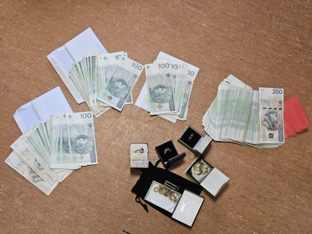 Przerażona kobieta, chcąc pomóc bliskiej osobie, spakowała wszystko, co miała najcenniejszego. Do koperty trafiło prawie 40 tysięcy złotych w gotówce oraz rodzinna biżuteria: złota obrączka, pierścionki, łańcuszek i kolczyki. Policjanci z Komendy Głównej oraz Wydziału Kryminalnego KSP, którzy monitorowali sprawę, uderzyli w idealnym momencie. 22-latek został obezwładniony tuż po odebraniu przesyłki. Funkcjonariusze zabezpieczyli skradzione mienie w całości, biżuteria i pieniądze wrócą do właścicielki.