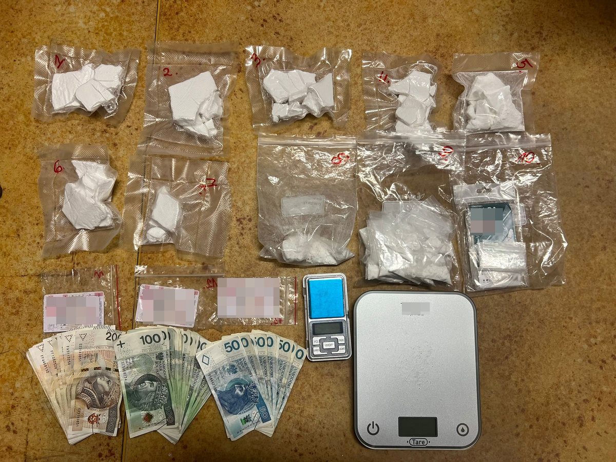 W trakcie przeszukania policjanci natrafili na hurtowe ilości białego proszku. Wstępne testy potwierdziły, że to amfetamina. Łącznie w ręce policji wpadło blisko kilogram zakazanych substancji. Oprócz narkotyków kryminalni zabezpieczyli trzy podrobione blankiety praw jazdy. Jak ustalili śledczy z Prokuratury Rejonowej w Rykach, mężczyzna sam podrobił dokumenty, zamierzając posługiwać się nimi jak autentycznymi.