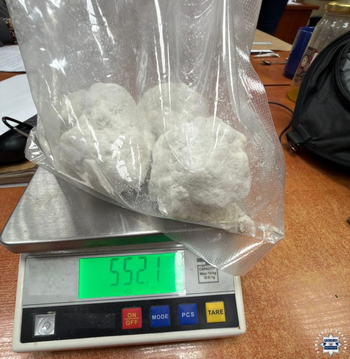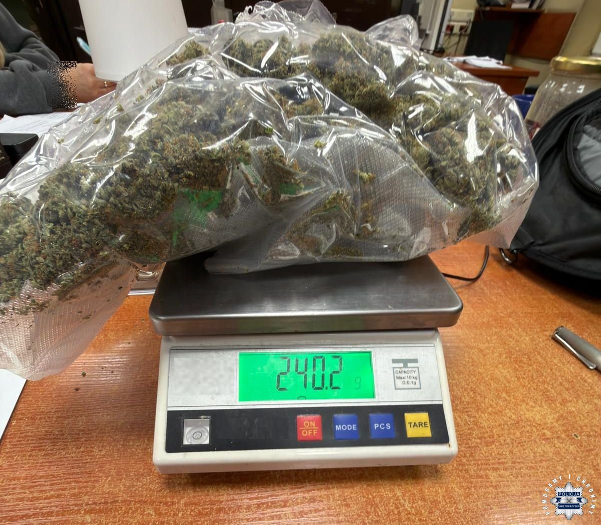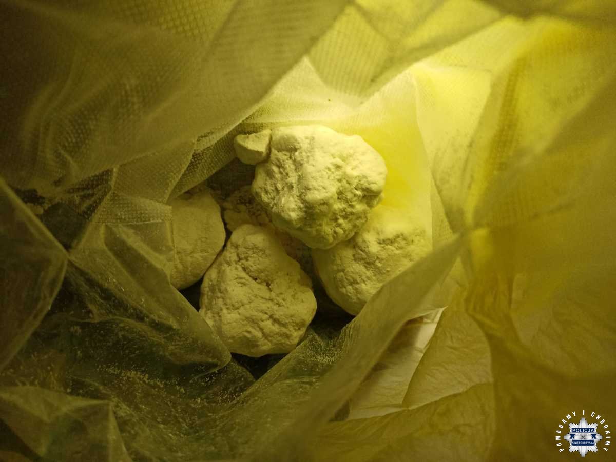 Po otwarciu plecaka policjanci ujawnili pokaźny zapas narkotyków. Wstępne testy wykazały, że w środku znajdowało się 550 gramów białego proszku (wstępnie zidentyfikowanego jako amfetamina) i 260 gramów suszu roślinnego (marihuany). Łącznie zabezpieczono ponad 800 gramów środków odurzających, co w świetle przepisów stanowi znaczną ilość.