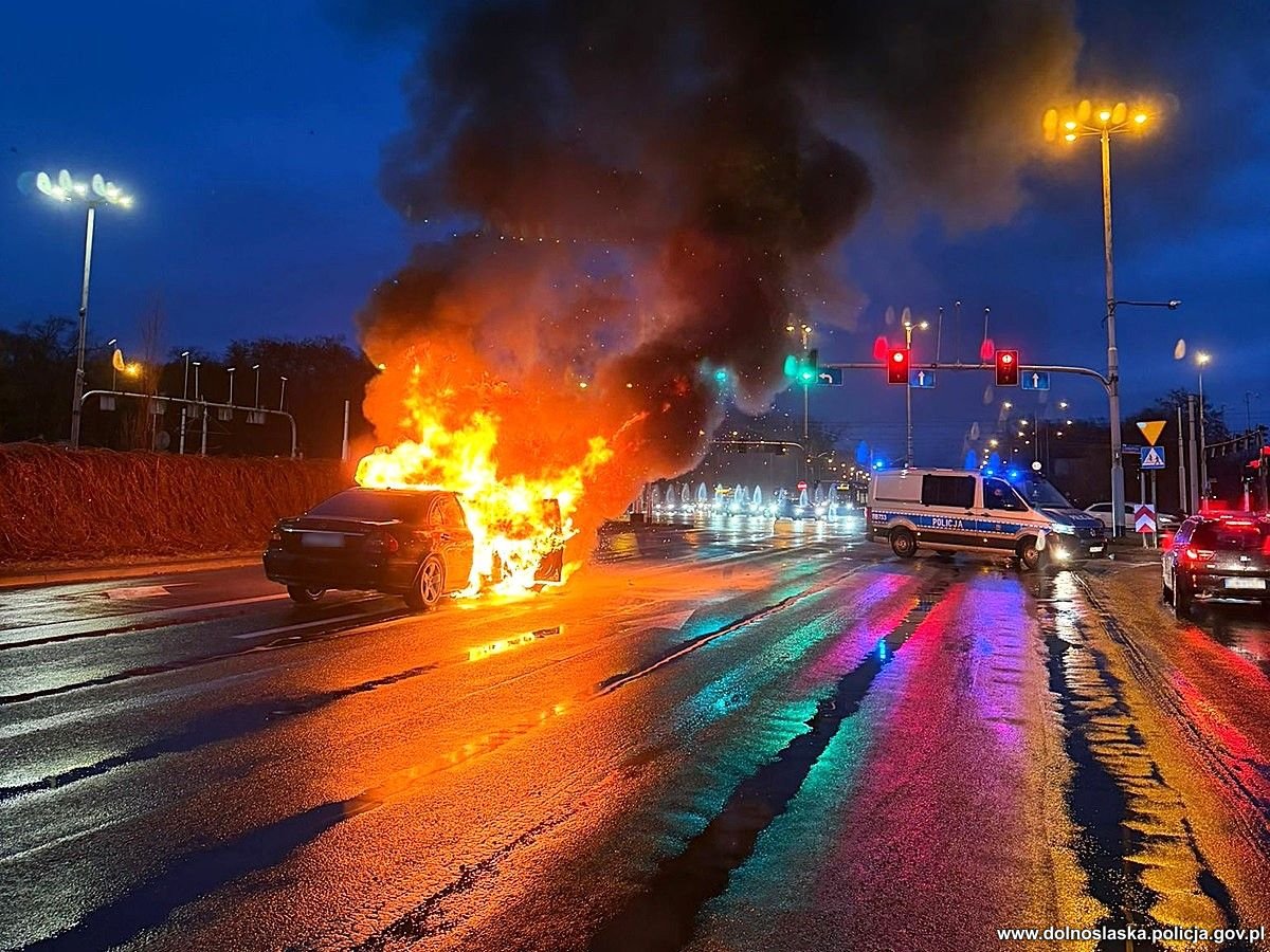 Jednocześnie policjanci zadbali o bezpieczeństwo innych kierowców. Radiowozy zostały ustawione tak, aby stworzyć strefę ochronną wokół miejsca zdarzenia, odgradzając je od intensywnego porannego ruchu. O incydencie niezwłocznie powiadomiono straż pożarną. Dzięki szybkiej reakcji mundurowych pożar udało się opanować, zanim ogień całkowicie strawił auto lub doprowadził do groźniejszego wybuchu. Po ugaszeniu płomieni policjanci nie opuścili miejsca zdarzenia, do czasu przyjazdu pomocy drogowej zajmowali się upłynnianiem ruchu, który w tym rejonie Wrocławia o poranku jest wyjątkowo natężony.