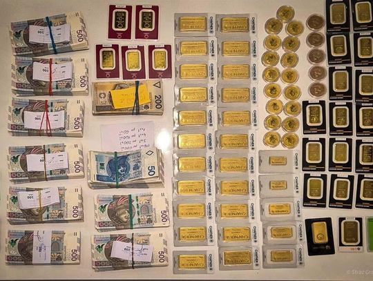 Podczas przeszukań zabezpieczono majątek, który robi wrażenie. Mundurowi przejęli gotówkę, złoto inwestycyjne, numizmaty oraz biżuterię o łącznej wartości 3,6 mln złotych. Dodatkowo, w toku czynności ujawniono przedmiot przypominający broń palną oraz narkotyki. Równolegle, dzięki współpracy z Generalnym Inspektorem Informacji Finansowej, zablokowano 28 rachunków bankowych należących do podejrzanych osób i firm, na których znajdowało się ponad 3,8 mln złotych.