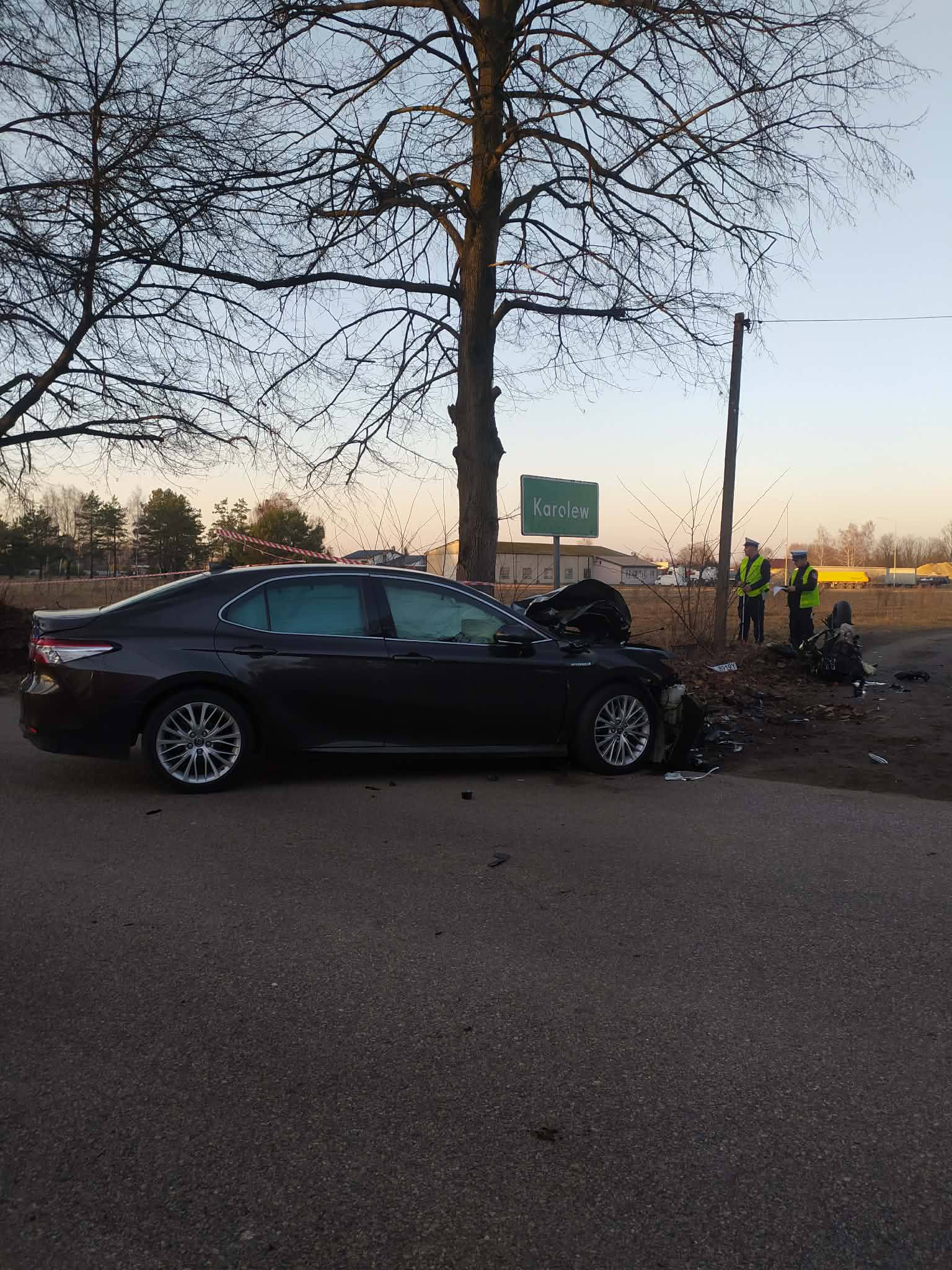 Do zdarzenia doszło w sobotę, 28 lutego, krótko po godzinie 15:00. Spokój podwarszawskiej miejscowości przerwał ryk silnika i potężne uderzenie. Według wstępnych ustaleń śledczych, kierujący Toyotą wykonywał manewr skrętu w lewo. W tym samym momencie z przeciwka nadjechało suzuki. Motocyklista nie miał czasu na reakcję, z ogromną siłą uderzył w przód samochodu.