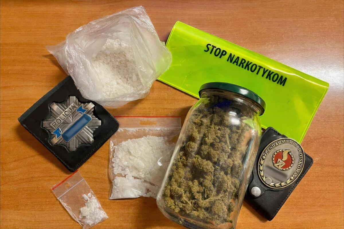 Podczas przeszukania 21-latka oraz jego plecaka, mundurowi ujawnili znaczną ilość środków odurzających: 57 gramów suszu roślinnego (marihuany) i 124 gramy białej, zbrylonej substancji psychotropowej. Testery narkotykowe potwierdziły, że są to substancje psychoaktywne, które nie trafią już na ulice miasta. Dalsze ustalenia śledczych, prowadzone we współpracy z Żandarmerią Wojskową, wykazały, że mężczyzna nie tylko posiadał narkotyki, ale także zajmował się ich udzielaniem innym osobom.